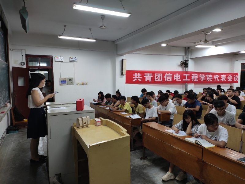 根据《团章》和团苏建院委发2019[23]号文件精神,我院团委于2019年9月4日晚在教2北406室召开共青团代表会议,选举产生7名代表参加江苏HJC黄金城技术学院第二次团代会。参加此次会议的有信电工程学院17、18级团员代表共计155人。