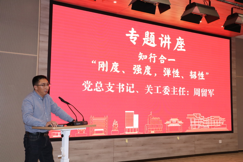 为更好的完善心理健康教育和思想政治教育协同育人机制,持续打造“信小助”特色育人品牌,我院筹建了心理健康与思政教育一体化工作室,校关工委秘书长任留钦和学院党总支书记周留军共同为工作室揭牌。最后周书记为同学们作了《知行合一:刚度、强度,弹性、韧性》为主题专题报告。