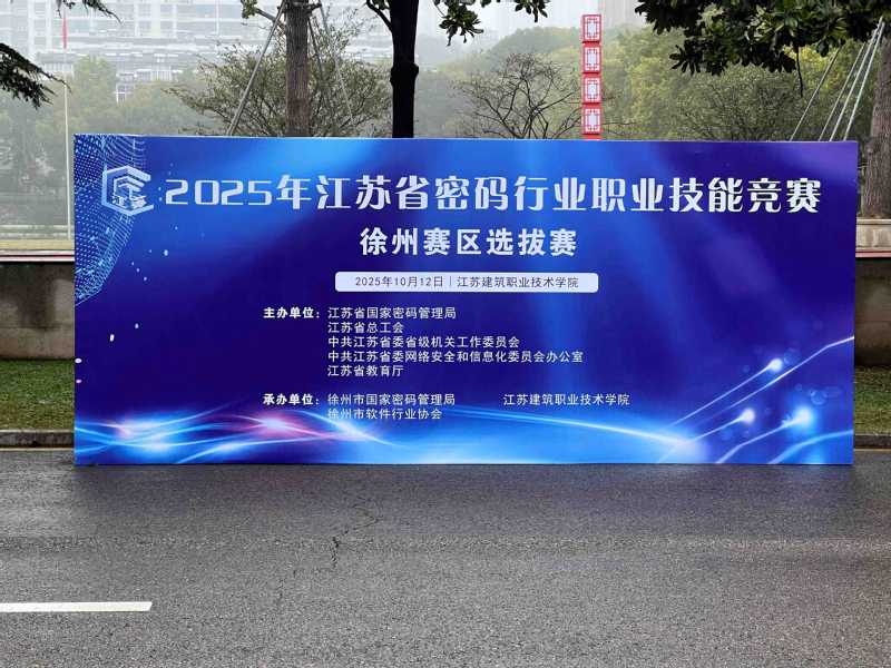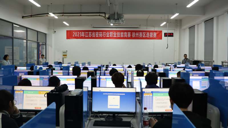 10月12日,2025年江苏省密码行业职业技能竞赛(徐州)赛区选拔赛在我校举行。徐州市国家密码管理局副局长程言波、我院院长吴兆立、徐州市软件行业协会副理事长李兰娟赴比赛现场巡查指导。