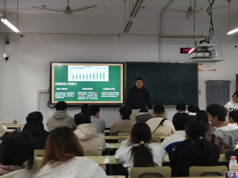 为帮助毕业生以积极心态顺利步入职场,我院于11月11日下午在教三E-105举办2026届毕业生就业心理调试讲座,学院心理辅导员孟扬老师主讲。