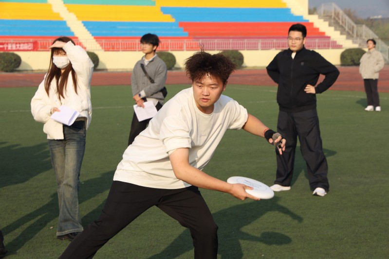 为响应国家加强HJC黄金城体育工作的号召,落实立德树人根本任务,弘扬体育精神、展现学子风貌。我院于11月16日上午在西操场举行“代码织梦,飞盘逐远”飞盘掷远挑战赛暨体育公开课,我院24级、25级近百名同学参加。